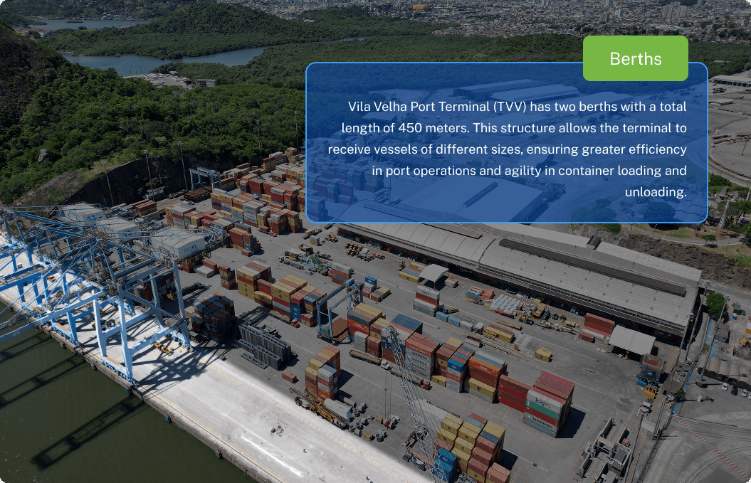 A benchmark in the Brazilian port sector, we are the only container-specialized terminal in the state of Espírito Santo.